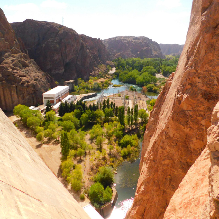 - Desde un lado del murallón de hormigón, tendrás una vista impresionante de un lago rodeado de rocas rojizas, creando un marco imponente en medio de un paisaje natural. Por otro lado, los farallones rocosos forman un cañón de tonos rojizos que encajonan las aguas del río durante varios kilómetros. A lo largo de las riberas, la vegetación y el color del agua del Río Chubut crean un paisaje perfecto para el descanso y la contemplación de la naturaleza en todo su esplendor.